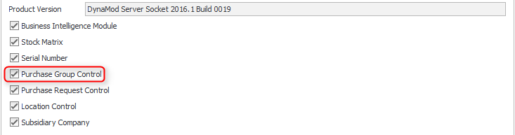 This purchase group control will be a new add on module which not include in standard package. This module is release in DynaMod v2016.1 Build 0040 and DynaMod Server Socket 2016.1 Build 0019.