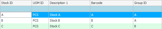 | Stock | Stock Group | Supplier |