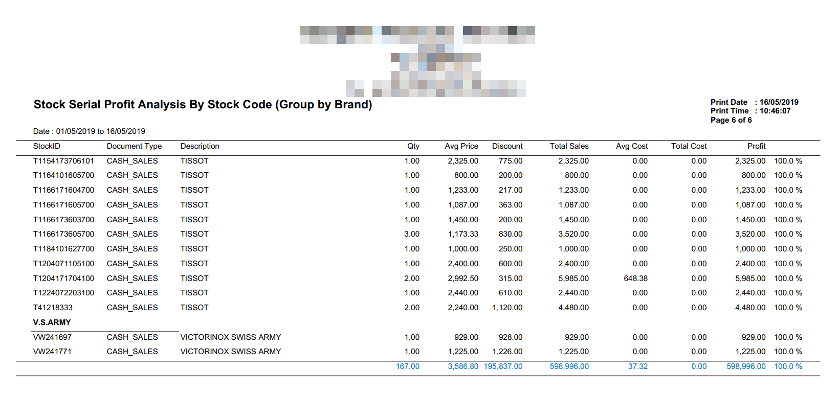 Note: The cost was derived differently from Stock Card Listing and normal Stock Sales Analysis Report (which is using comprehensive way for system costing method and mechanism), whereby it will gather the most recent purchase as cost of goods sold. Therefore do not compare the cost and profit against Stock Card Listing and normal Stock Sales Analysis with this report.