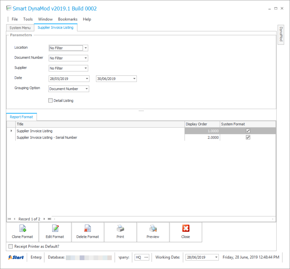 Notes: The report breakdown details and summarized the figures by selected Grouping Option such as Document Number/Document Date/Supplier/Location with tick the checkbox Detail Listing.