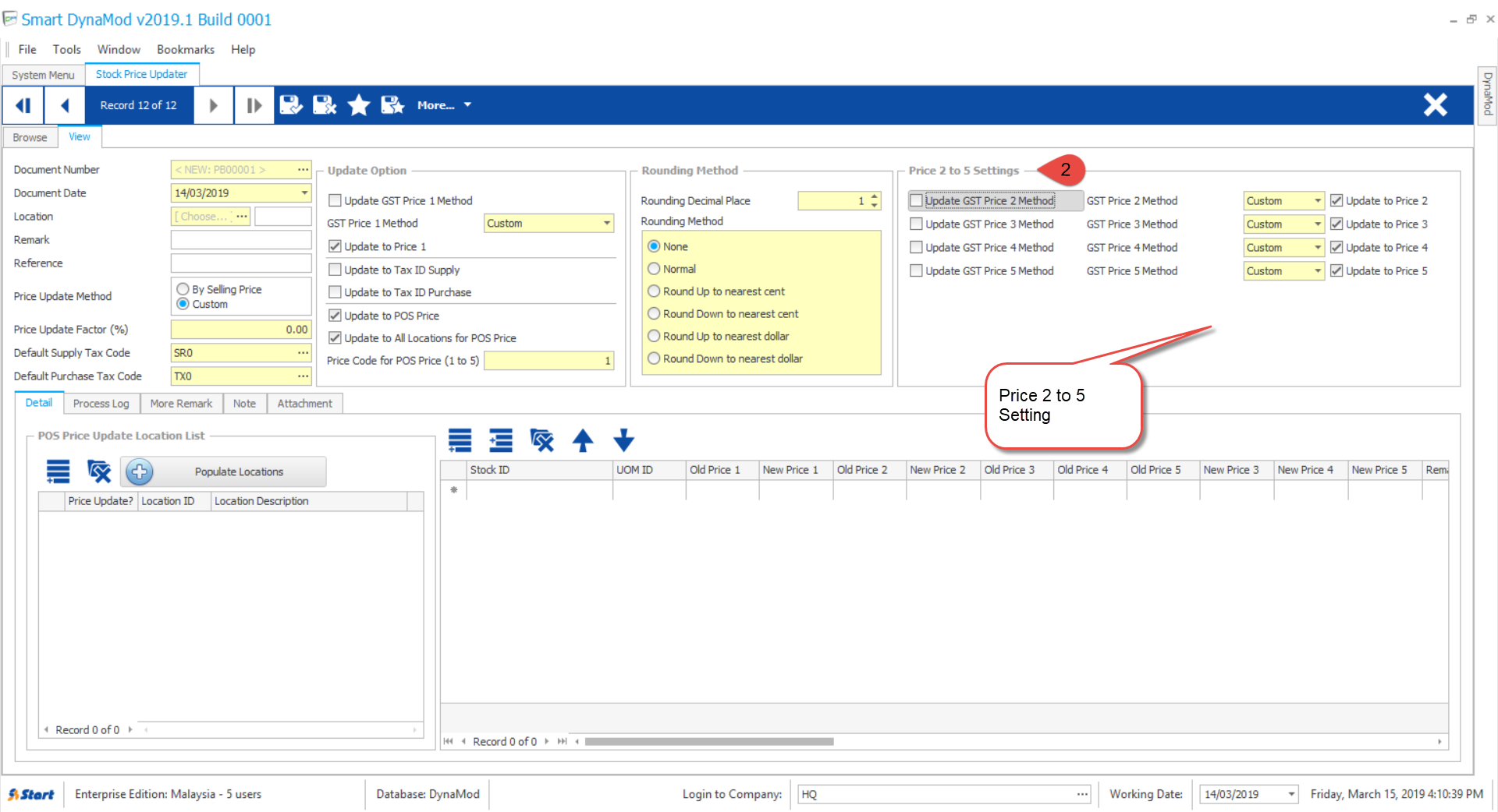 Stock Price Updater - Interface Updated for Price 2 to 5 Setting