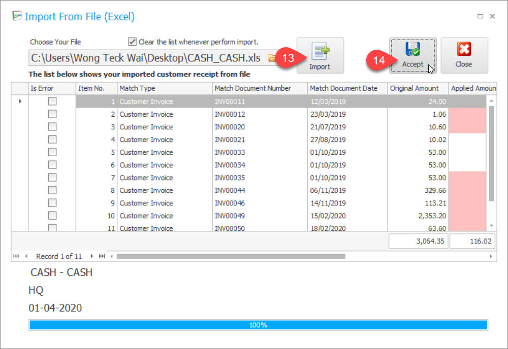** This selection is for the user convenience to apply a lot and selective of Customer Invoice in the excel
