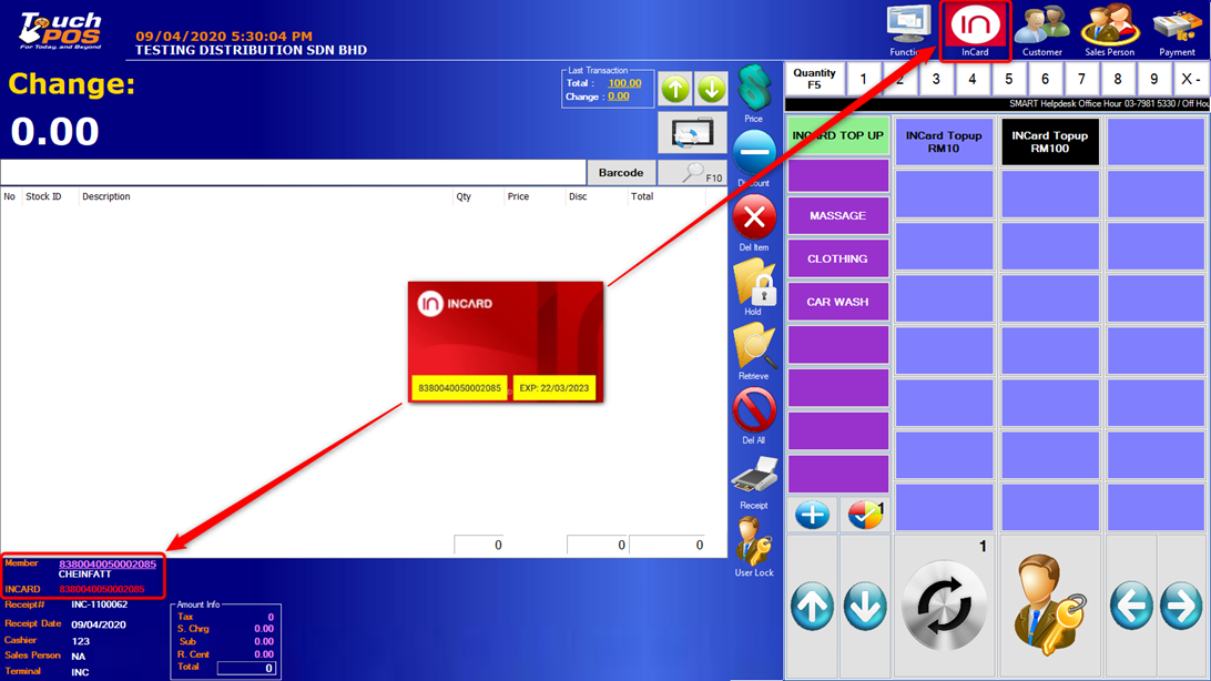 POS Management >> Setup >> POS Setting >> INCard Prepaid Stock