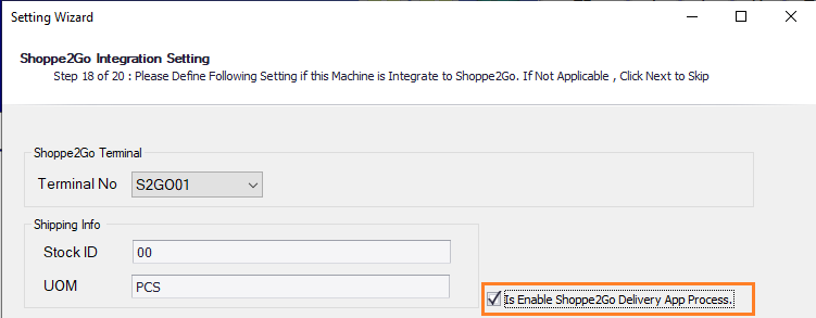 8. Setup Wizard - Shoppe2Go Integration Setting to show [Is Enable Shppe2Go Delivery App Process] which synchronize from backend.